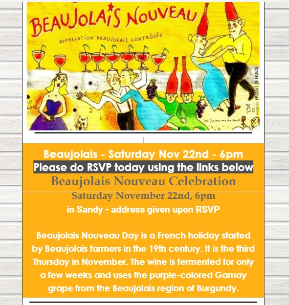 Beaujolais Nouveau~ Saturday, November 22nd, 6pm~Current Members receive an electronic invitation with link to RSVP